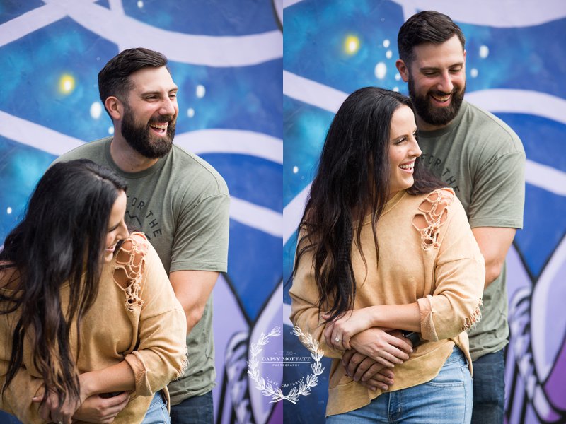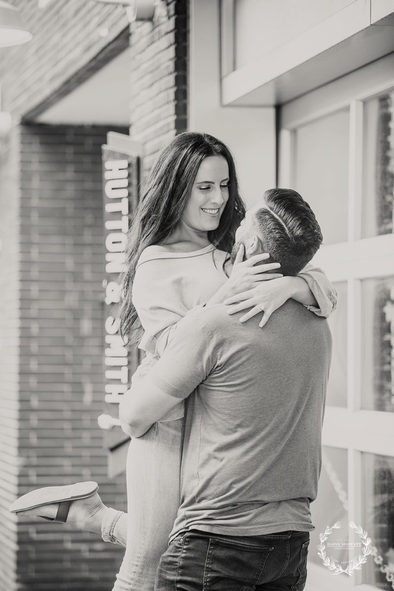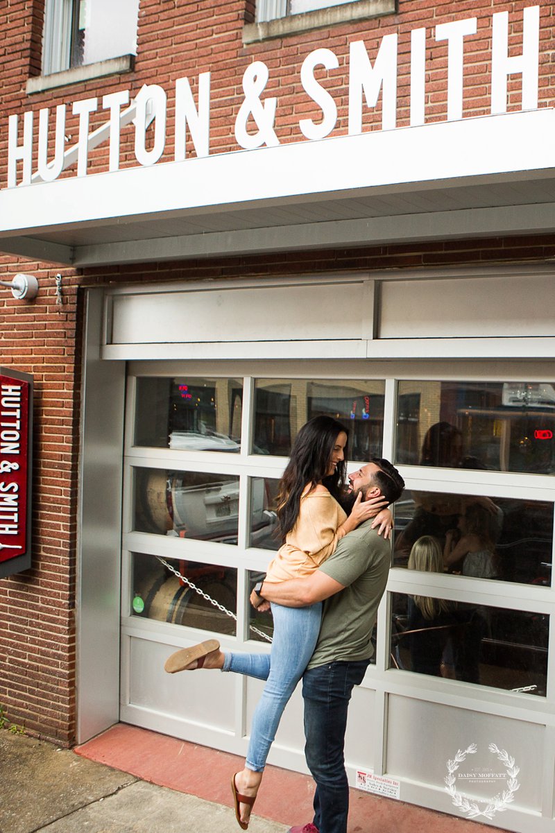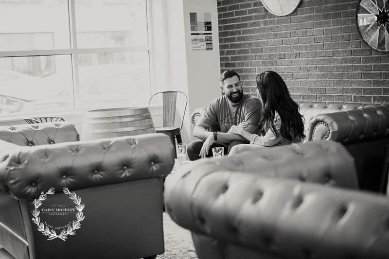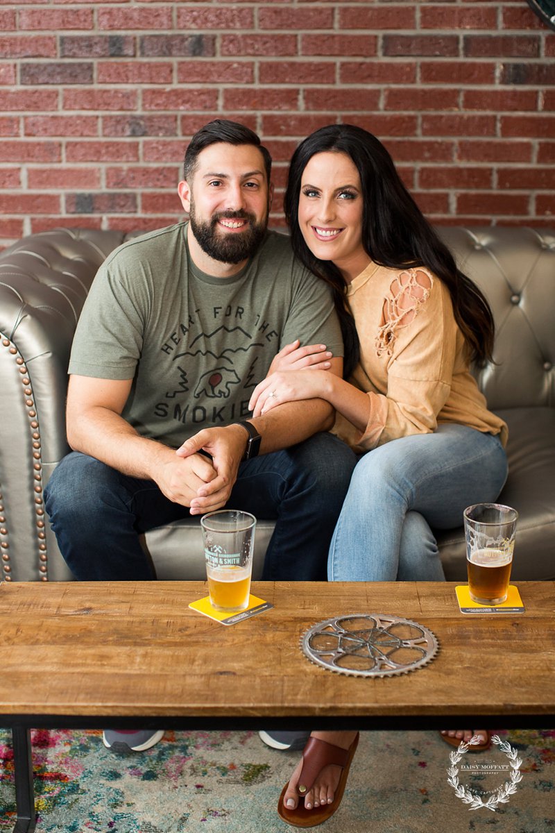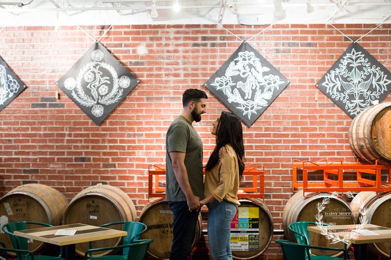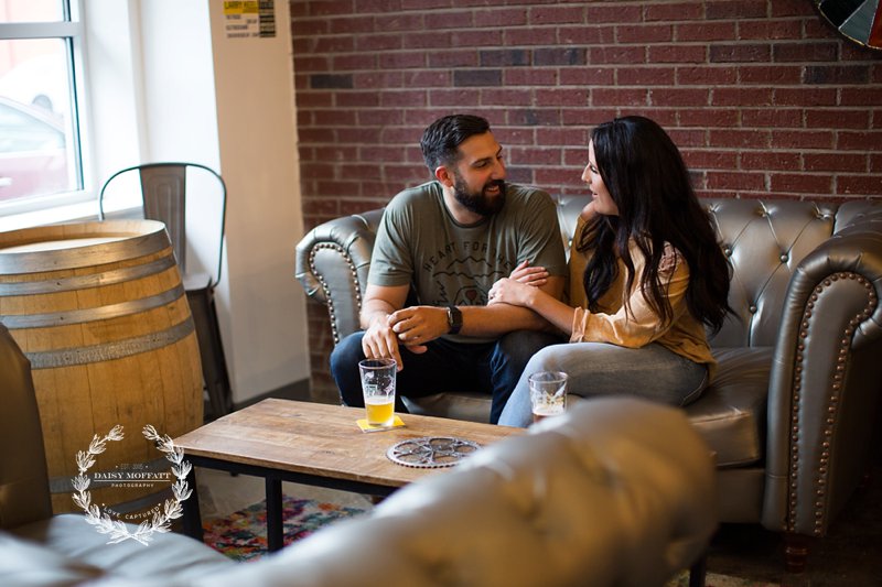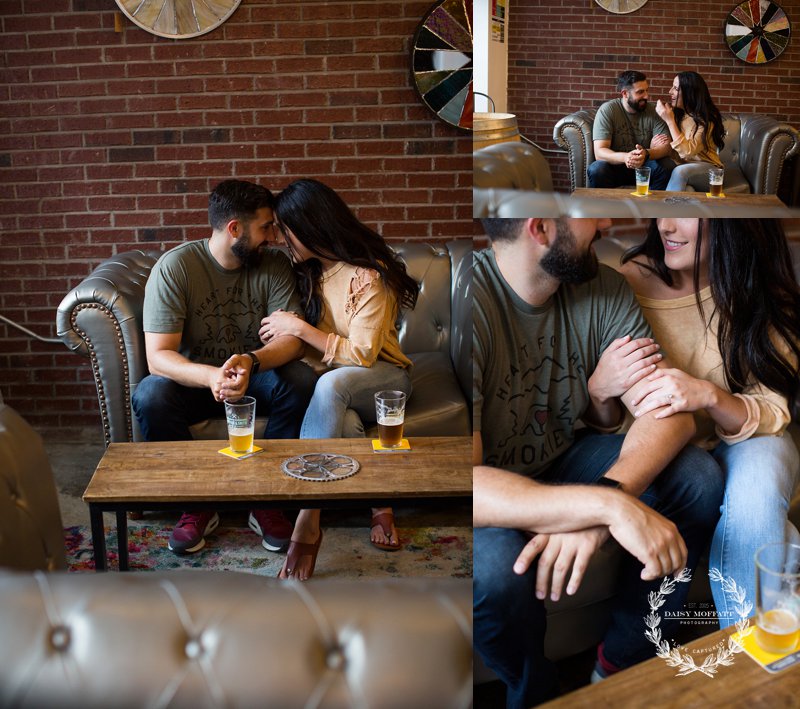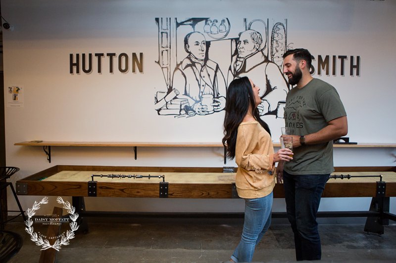 Beau and I recently met up with Brian and Heather for their lifestyle engagement session at one of the best breweries in town, Hutton and Smith. We really wanted to make the shoot about them, capturing their fun-loving and adventurous personalities and allowing them to celebrate this exciting season in their relationship. They chose Hutton and Smith because they love catching up together over a beer after a busy work day and enjoy the relaxed vibe around that area of town. Not to mention it was Brian’s birthday so we definitely wanted to kick the shoot off with a few cheers! It was a super fun night and I’d say they definitely killed it (lol please note Brian’s epic moves below). 🙂