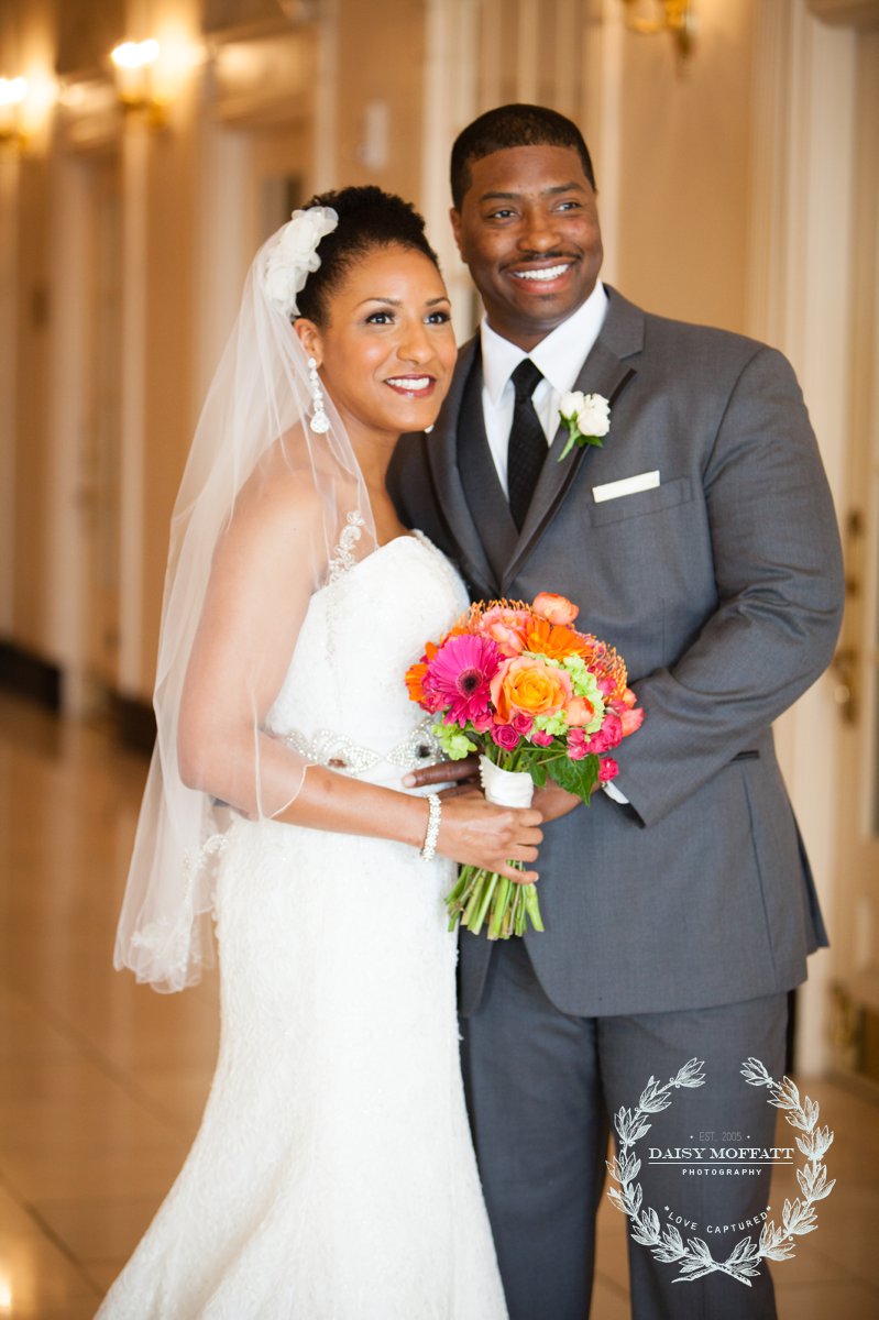 When I first met with Adrienne I immediately knew we would love working with her and Jabruan. Adrienne had such a sweet sparkle in her eyes when she started to tell me about Jabruan and how they met while teaching at the same high school. Months later, that same sparkle shone bright on their wedding day as she met him for their first look at the Sheraton Read House. Jabruan was so excited to finally be marrying Adrienne and his huge smile and contagious laugh made any jitters melt away. After their ceremony at Orchard Knob Missionary Baptist Church we took advantage of the beautiful spring weather and went downtown for bridal party pictures before their reception at the Read House. Soundforce, Blissful Moments, The White Table, Humphrey’s Flowers and Gigi’s Cupcakes did a great job at making their party unforgettable. A huge congratulations to Adrienne and Jabruan–you two are amazing and we loved capturing your day!