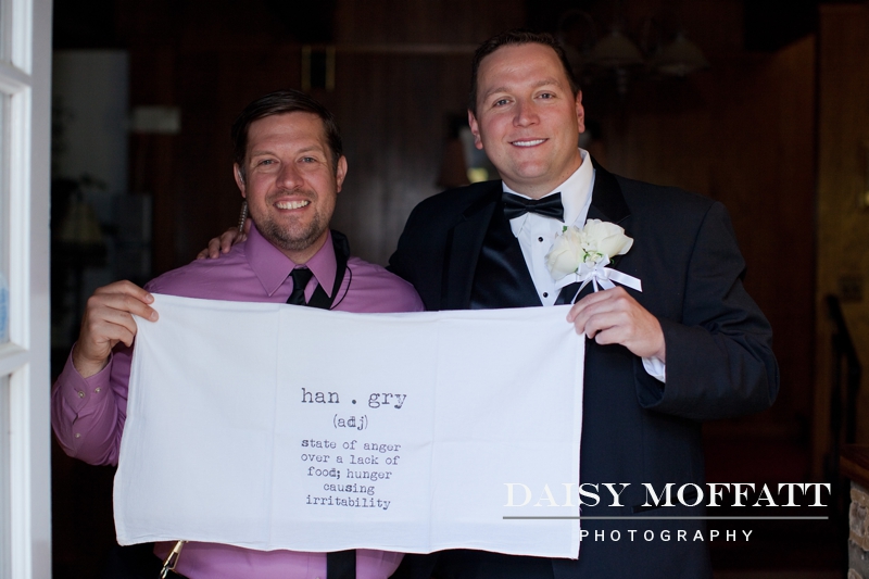 Best gift ever!! During their engagement session Beau and I shared about how crazy we get when we’re “hangry”. I died laughing when Amy surprised us with this adorable dish towel–it now proudly hangs in our kitchen! 🙂