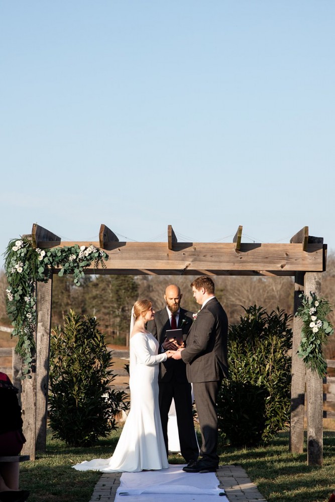 Their late afternoon wedding embodied Tennessee’s rustic charm and perfectly reflected their love for the great outdoors. When their sunrise outdoor engagements took our breath away I knew we’d be in for a treat with their wedding day. They showed their guests near and far the best of what Chattanooga has to offer with great temperatures (hello warm weather in January, what?!), mountain scenery, and sweet southern hospitality. Cedar Hills Farm was also the perfect setting for their outdoor nuptials. The rolling hills and picturesque views were framed with a wooden pergola altar at the ceremony, and the guests were treated to dinner and dancing in the beautiful weathered barn. We loved capturing such sweet moments throughout. Thank you JennaFaye and Gavin for choosing us to document your perfect day!