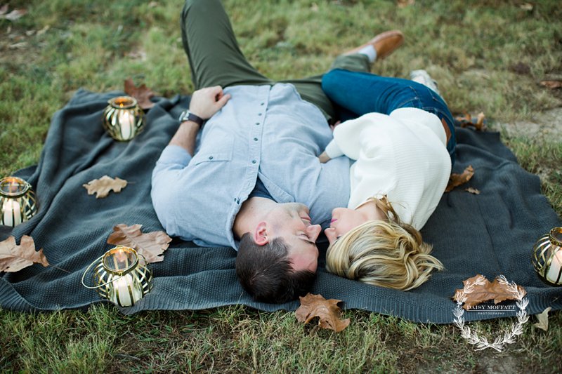 Katie and Jeremy are seriously one of the most fun loving and sweet couples around! Beau and I loved meeting up with them (and their adorable pup Hampton) for a cozy Chattanooga engagement session recently. They wanted a relaxed and warm fall shoot and nailed it by including all of their favorite things–cuddles, pups and date nights. 🙂