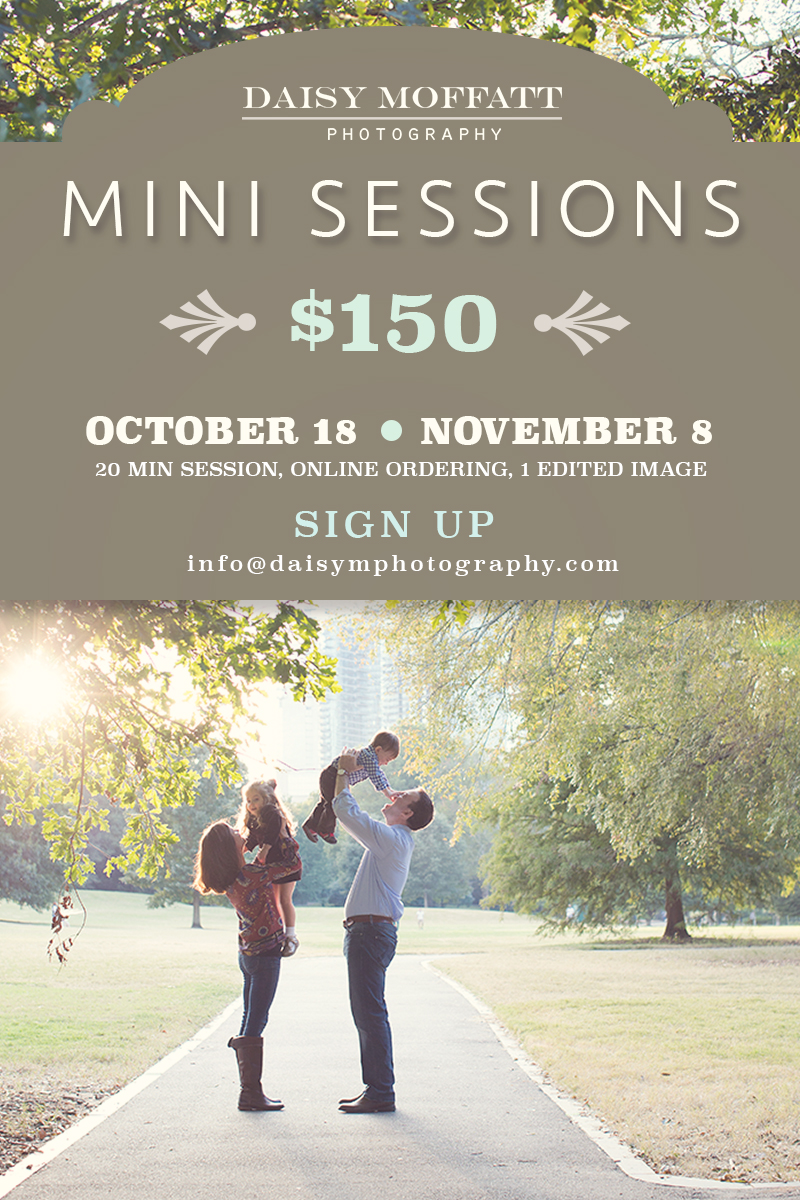 It’s that time of year, the lull before the holiday hustle. Get a jump on your fall portraits and holiday cards with one of our Chattanooga mini sessions. We are offering two dates (see below) so call or email the office to hold your spot. Space is limited!