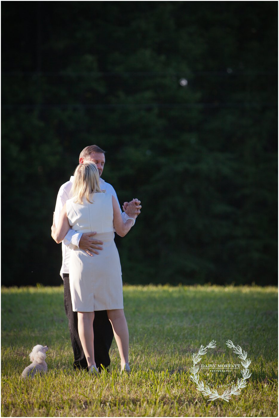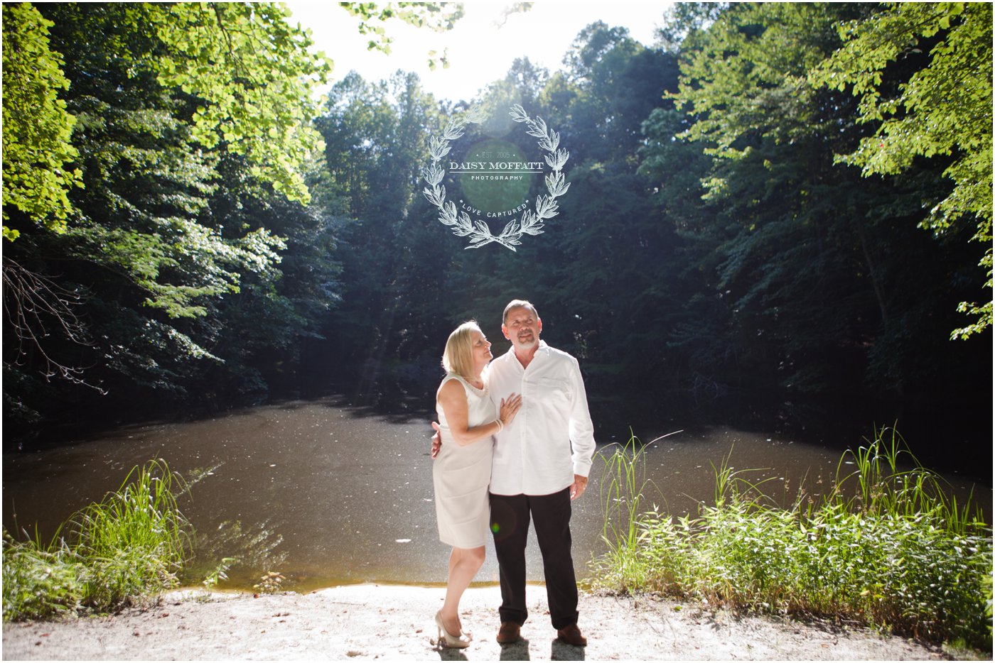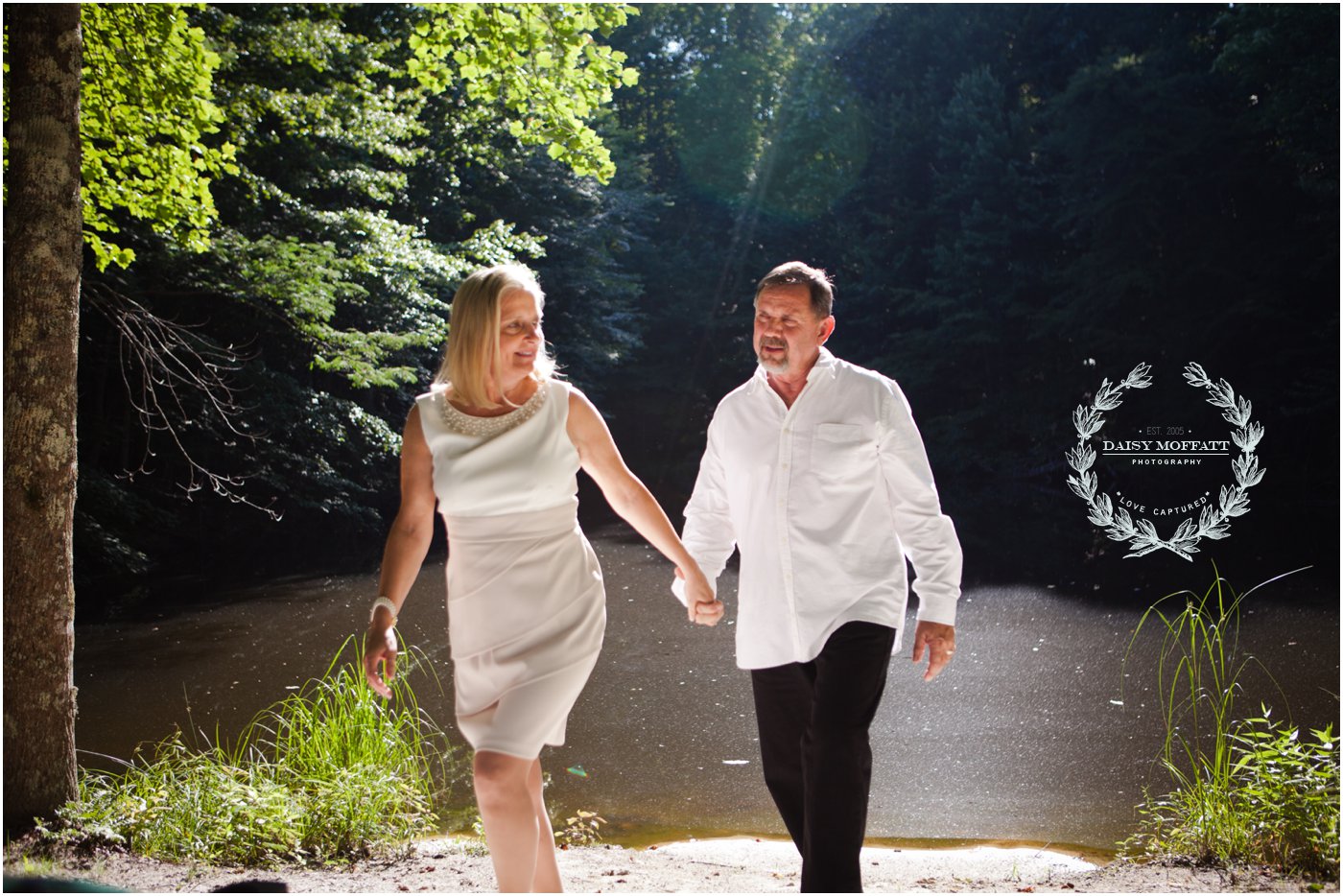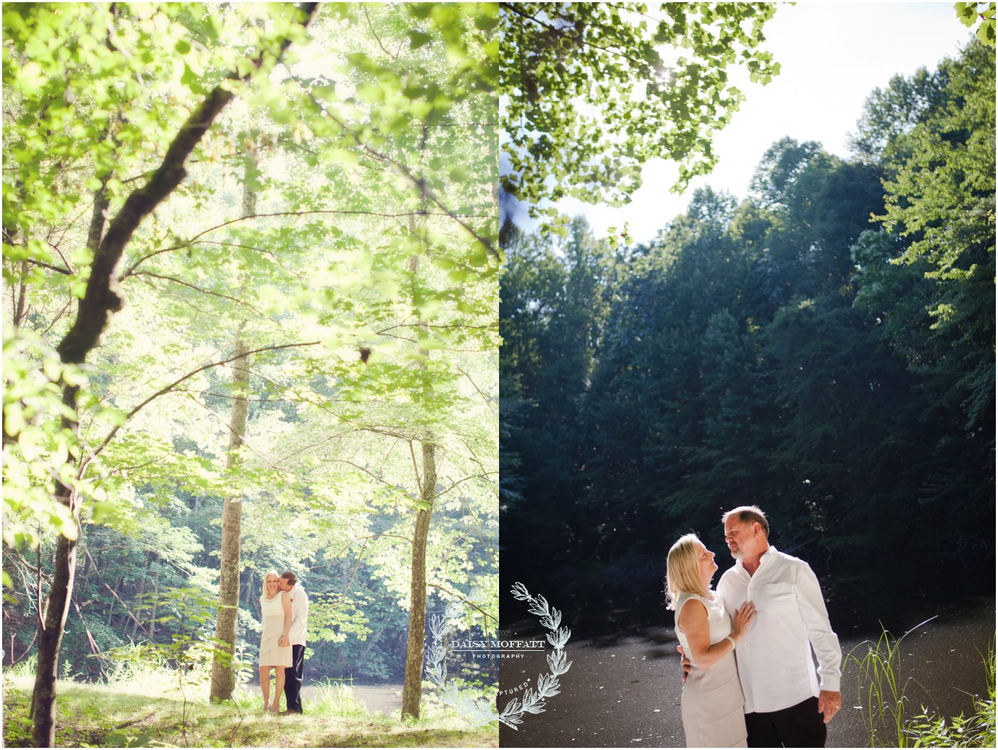 Around 5 pm that night, close friends Christal and Mike joined Cindy and Craig in the woods with Pastor Clyde Webb officiating. I couldn’t help but smile behind my camera as their emotion-filled vows filled the stillness of the forest. The sun sank behind the trees, the frogs and crickets voiced their approval, and Craig and Cindy committed their lives to one another on the mossy bank of a Tennessee pond.