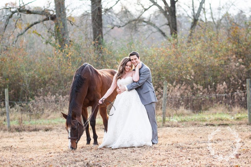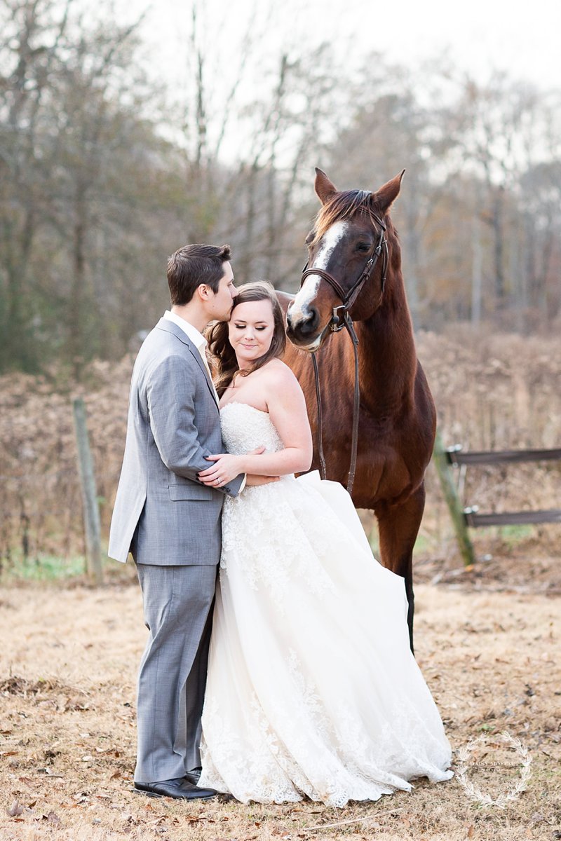 After the hustle and bustle of the wedding day these shoots are the best! We designed Day After sessions for couples who either chose not to have a first look and/or would love to celebrate in their wedding outfits just a bit more. So when Madison and Michael told me about their love for their fur babies and how they wanted to include them in their wedding memories (but not necessarily on the wedding day) I knew a Day After session would be perfect!! Working with Madison’s sweet horse and their adorable pup Evie was both hilarious and fun–both animals were excited to be the stars of the show… but also wanted to chase after their barnyard friends which made for some funny stories (thanks Candler for the additional wrangling help!). 🙂 Regardless I’m obsessed with how their session turned out.