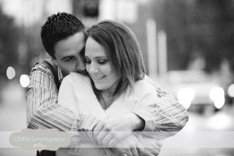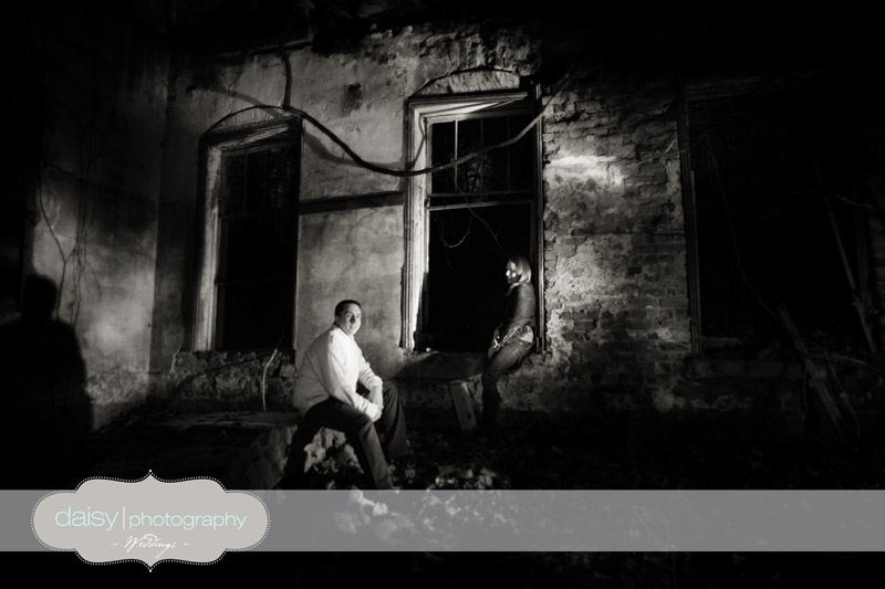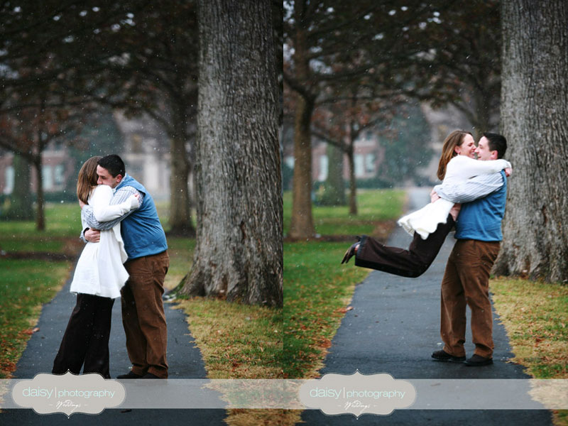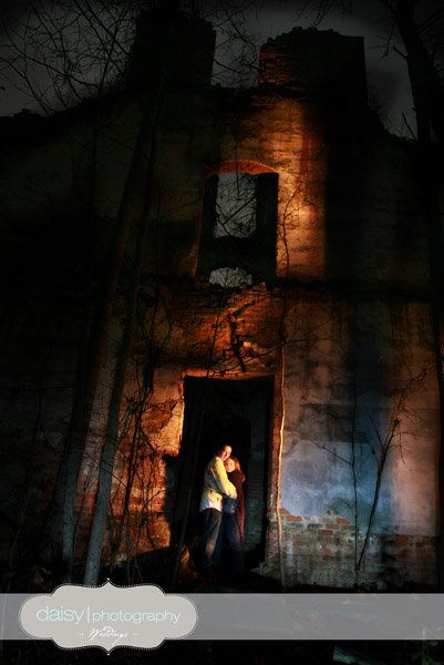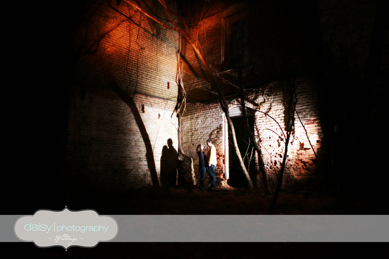 We had a great time right before Christmas when we visited Elizabeth and Jamie in Charlotte, NC. These two are adorable–one thing I immediately noticed was how sweet and comfortable they were with one another (they’ve known each other for 15 years-I love high school sweethearts!). There was an obvious ease with both and we had an awesome time chatting and laughing while we captured their Loveshoot around Davidson College. The snow that arrived during the shoot made a perfect backdrop and even with freezing sleet later in the day they took it like champs! Jamie kept us all laughing and after exploring a rundown building outside of town (such a cool place to paint with our lights!) we ended the session over dinner with their family.