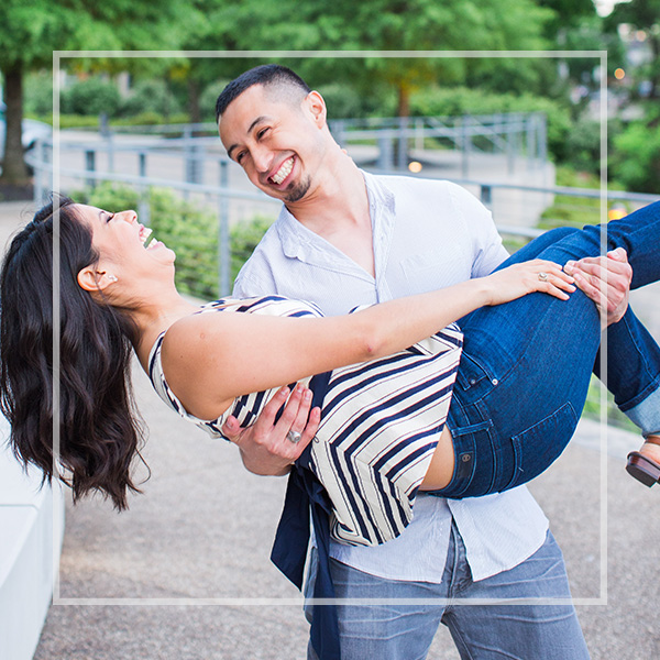During your engagement session be prepared to be affectionate, close, and relaxed. Leave the posing and what-do-I-do-with-my-hands to us, we want you to focus on each other. Don’t worry about always looking at the photographers. Lock eyes, get silly, move, dance, walk, talk – if you focus on each other you’ll interact in a more natural way and will see a huge difference in your photos!