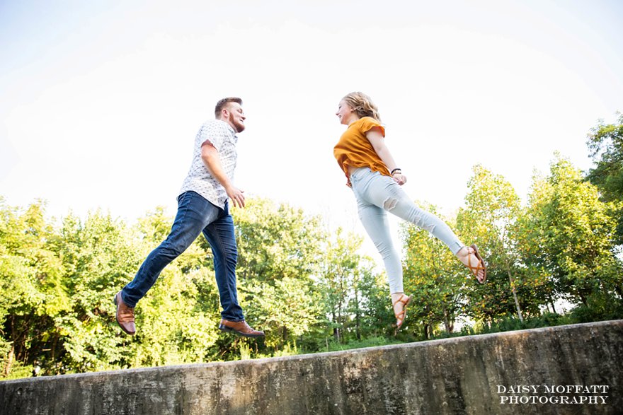 I can’t tell you how excited I am for this sweet wedding and I’m in love with these early fall engagements! When Hannah reached out to us after Landon popped the question we knew working with them would be a blast. They are both so comfortable together and have a great sense of humor (seriously, when I encouraged them to skip towards each other at one point neither of them hesitated and those are now my favorite shots lol!). Honestly, couples who love to make each other laugh are the greatest imo!