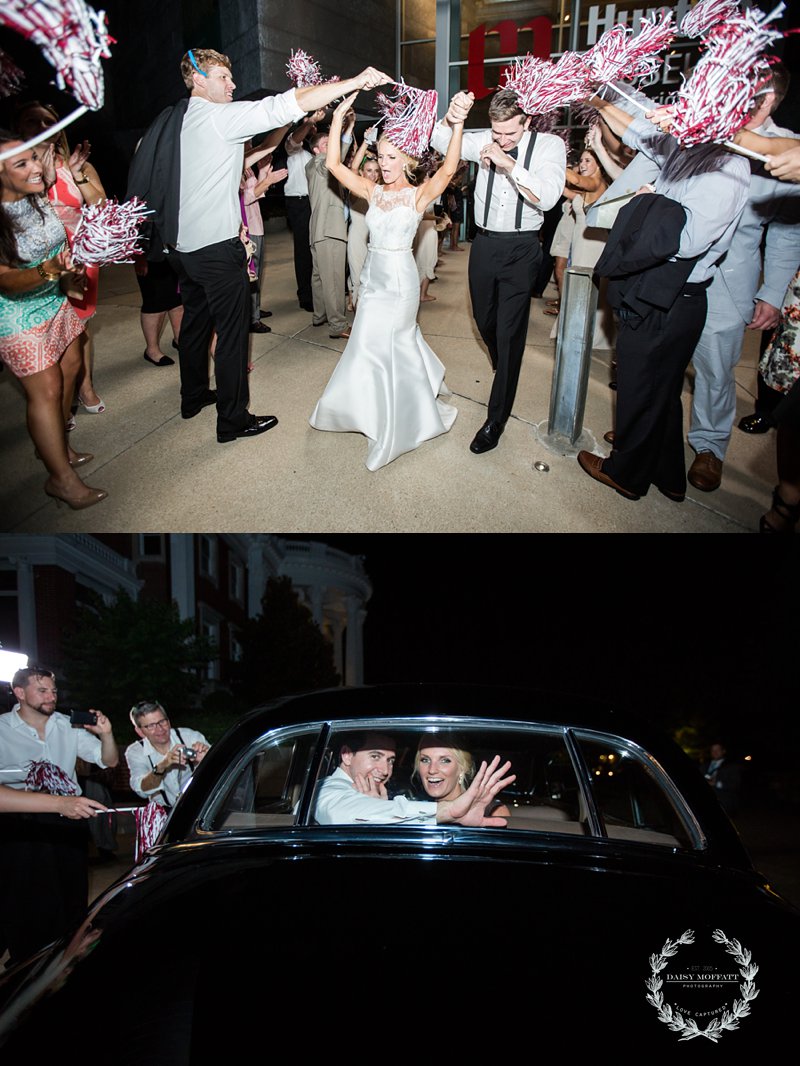 “Oh everything is PERFECT!!!”. Brittany gushed these words as she smiled over her shoulder towards Mike. They walked towards their wedding reception on the Hunter Museum river terrace, taking in each detail lovingly. The white draping with crystal chandeliers. Their gold chevalier chairs and white leather couches. The white floral centerpieces playing with the pink sunset over the river. Their gold custom embroidered pillows, and the delicious scent of dinner wafting in the evening air. No detail had been overlooked by Soirees. Their wedding celebration was finally about to begin!