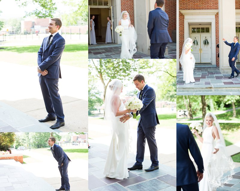 After years together Victoria and Tripp knew that they wanted a day which would reflect their history as well as their future. Classic touches such as white hydrangeas mixed beautifully with more modern blue and green accents (check out those incredible duck feather boutonnieres by The Clay Pot!). Their ceremony took place at the gorgeous McCallie Chapel in downtown Chattanooga. After their first look on the steps of the chapel we explored the grounds and took advantage of the June afternoon. I just loved how excited they both were to be marrying each other–it is so obvious in every picture!!