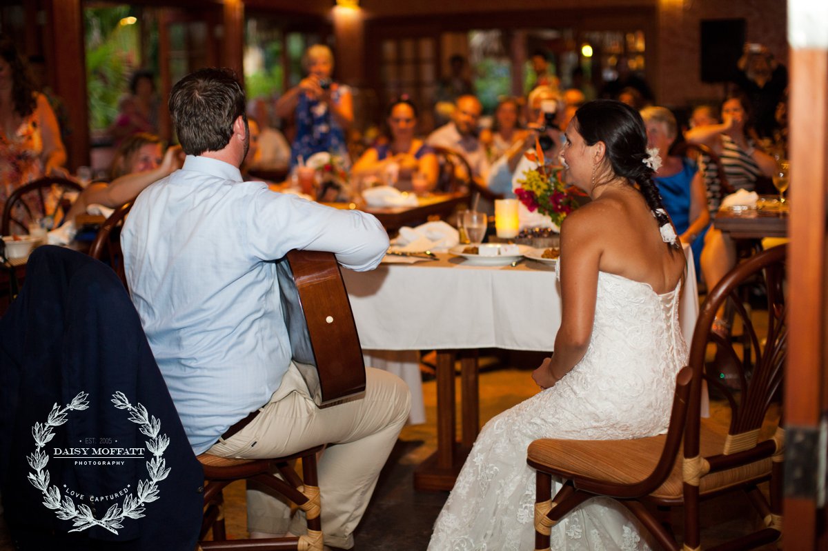 The clouds cleared just in time for photos afterwards giving us a fresh and colorful backdrop to work with. The reception was full of laughter, toasting and dancing. But the highlight of the night occurred when Joel took center stage to surprise Patterson one final time. You see, Patterson had always joked that she wanted a guy who played the guitar. After meeting Joel she knew she would spend the rest of her life with him even though he wasn’t a musician. After months of undercover lessons and stealthy practicing Joel surprised his new bride by playing (AND singing) her very favorite song over dinner. It was perfect.