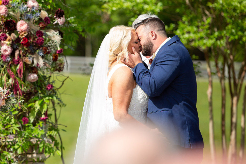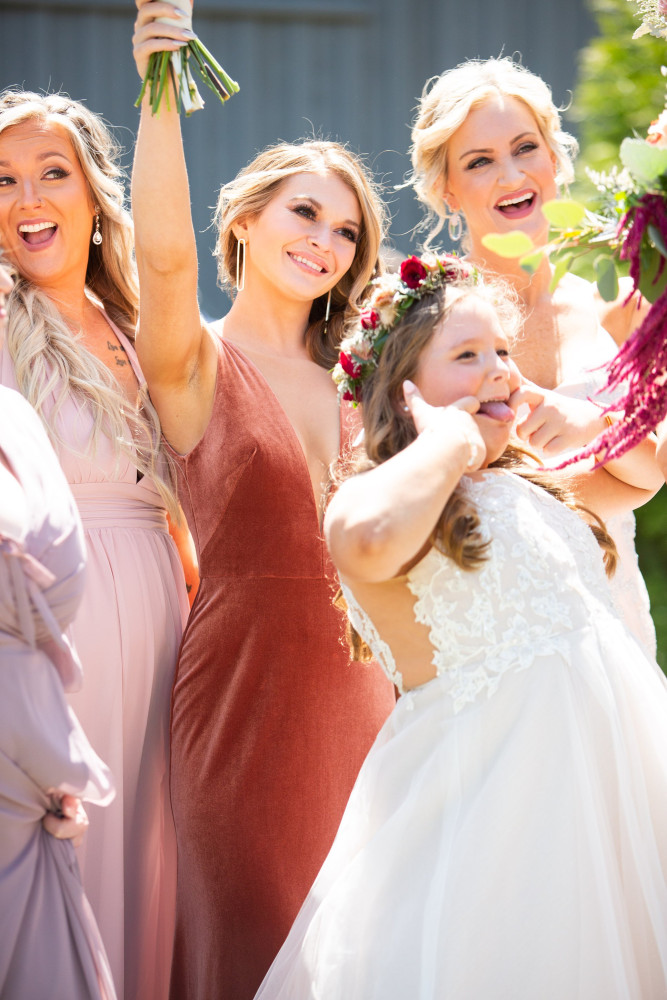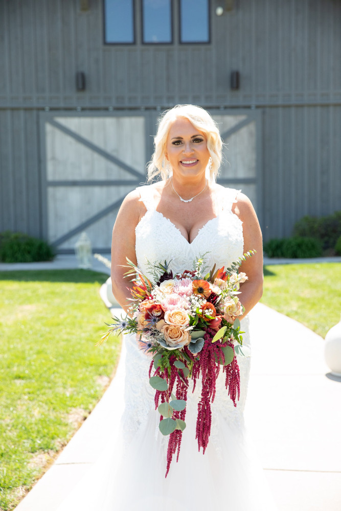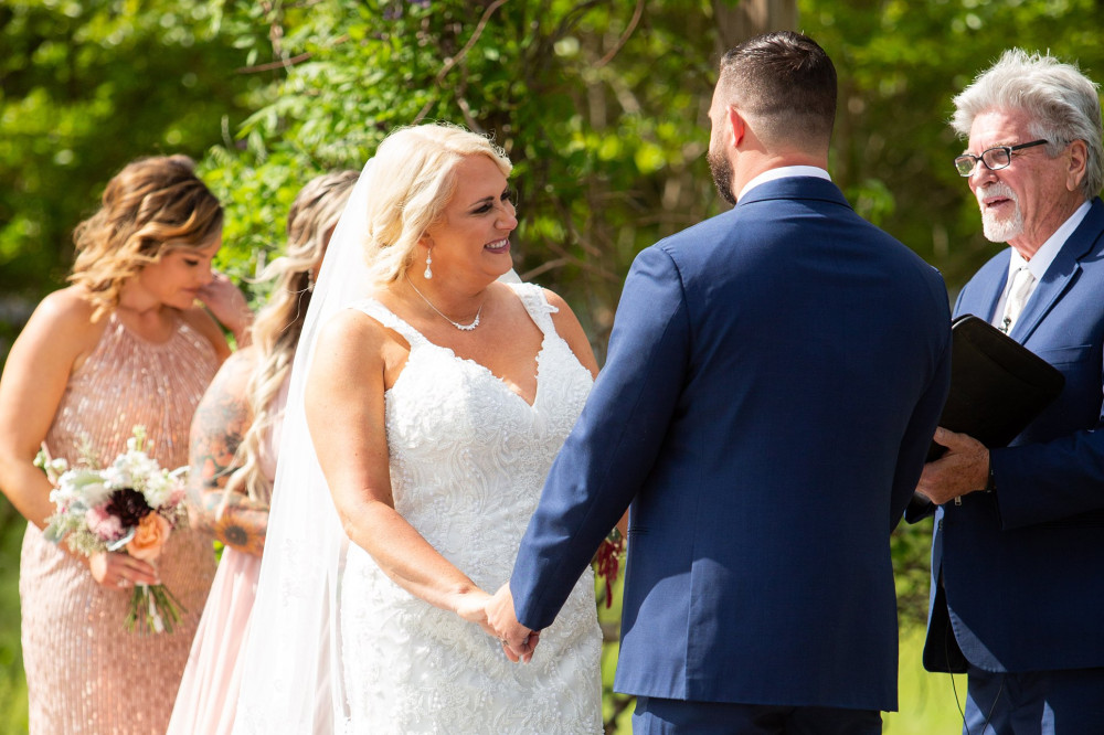 A soft April breeze played in the trees surrounding Howe Farms Apple Barn venue. As I peeked in on Juli in their bridal suite my heart smiled. She was surrounded by the usual hustle and bustle of wedding day preparation but she sat still, watching the room, as a small smile played on her lips.
