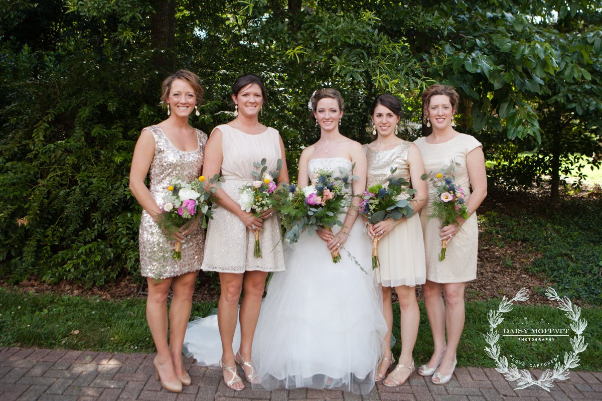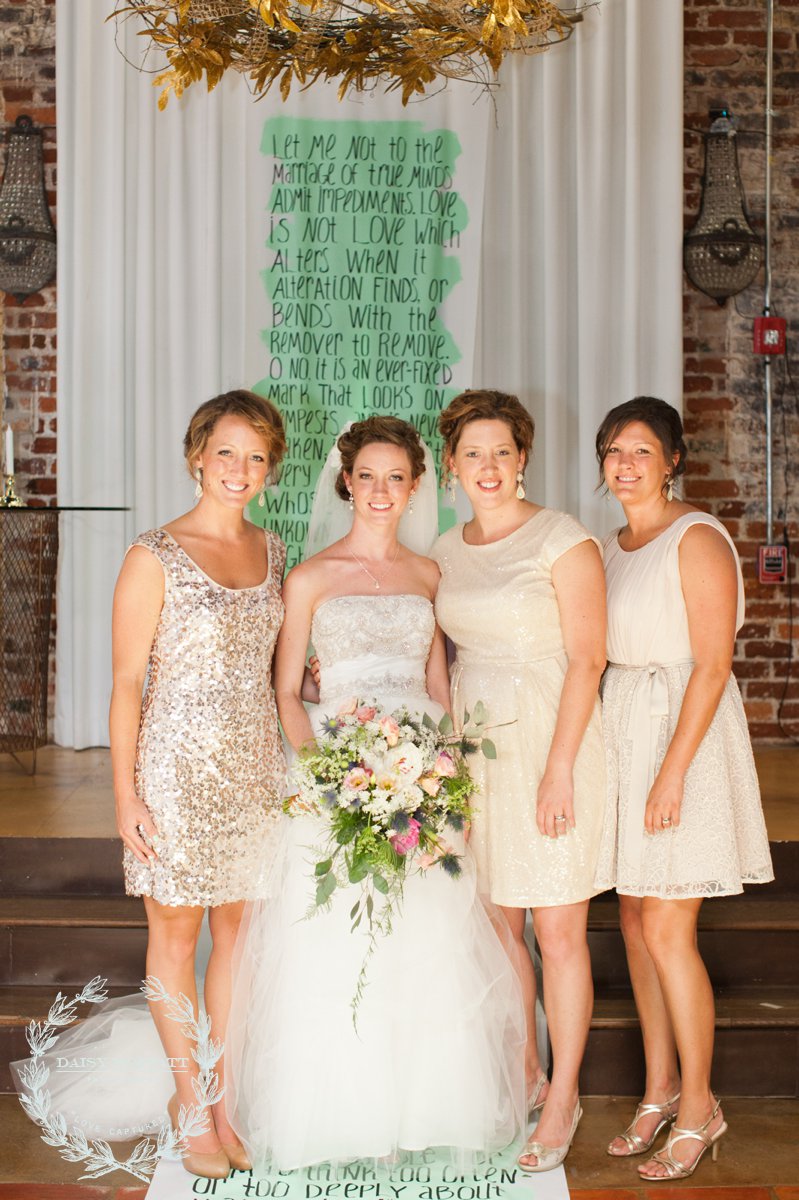 Many people asked if I would be photographing their day and to be honest, I was a little happy to say no (although we did photograph their engagements–one of the coolest shoots ever!). Juliane was the last sister to say “I Do” and I did not want to miss out on being in the moment with her. I am blessed to have such a great team at Daisy Moffatt Photography and Michael and Julie decided to commission Beau and Stephanie to cover their day–as you can see below, they rocked it! I’m thankful that I was able to just be a sister and bridesmaid (although I did grab the camera for a few portraits while Juliane was waiting to walk the aisle. She was glowing!). I especially loved our gold sequins dresses and handmade bouquets. Everything about their day reflected these two. So without further adieu, enjoy some eye candy from one of the most creative Atlanta weddings out there. Cheers!