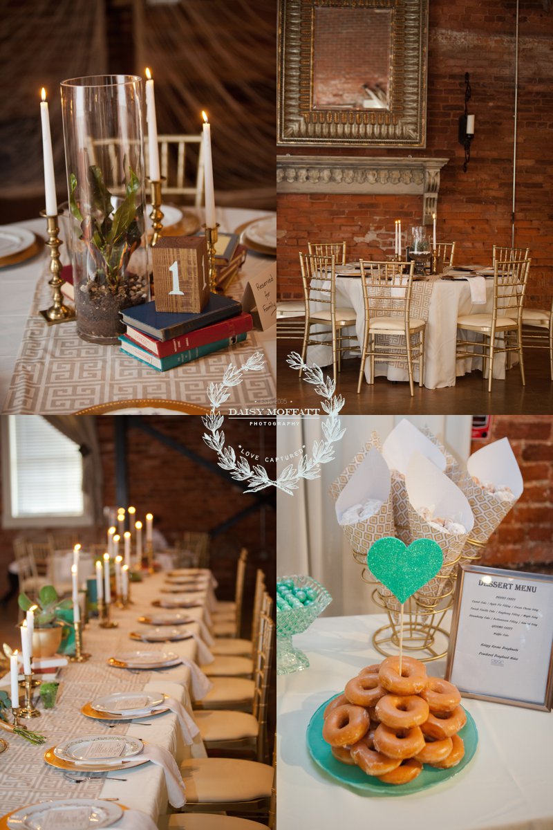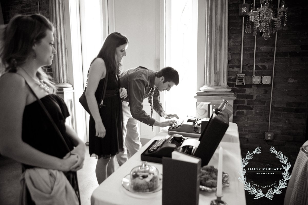After that hilarious blind date Michael and Juliane were literally inseparable. Following some long distance living they eventually ended up in Atlanta and were engaged last fall. We always knew Julie’s wedding would be an event to remember, but when all the puzzle pieces fell together for their Atlanta wedding it was extraordinary. Juliane is an amazing writer and has always loved books, art, playwriting and painting. I remember her phone call when they finally found the Roswell Historic Cottage in the adorable town of Roswell, GA. It was an old library that had recently been converted to a wedding venue, complete with antique chandeliers and the original exposed brick walls. She was giddy with excitement and quickly began collecting old books and vintage typewriters to make their day as unique as them.