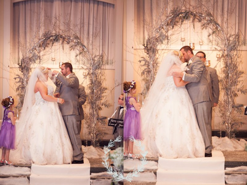 I am so thrilled to introduce our first Daisy Bride (and Daisy Groom if you follow us on Instagram!) of 2015, Katelyn and Jarod. When we walked into Katelyn’s wedding suite to begin photographing her getting ready the usual anxiety was just not there. Instead, Katelyn floated from bridesmaid to bridesmaid as she helped with their makeup, making jokes and celebrating every detail that was laid before her. If you know Katelyn you absolutely know what a sweet joy she is to be around, and her wedding day proved no different. Turning their church into a winter wedding wonderland (complete with a snow machine!) is not for the faint of heart, but she managed with grace and poise and it turned out beautiful!