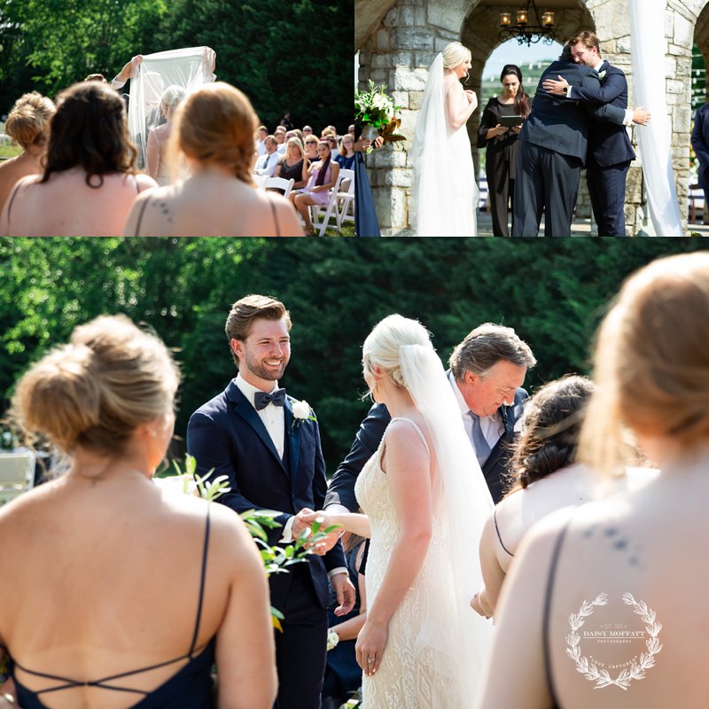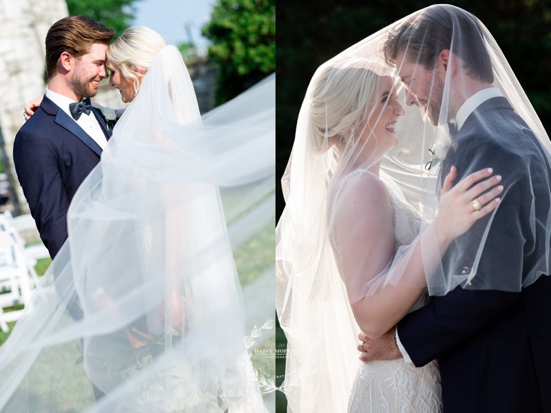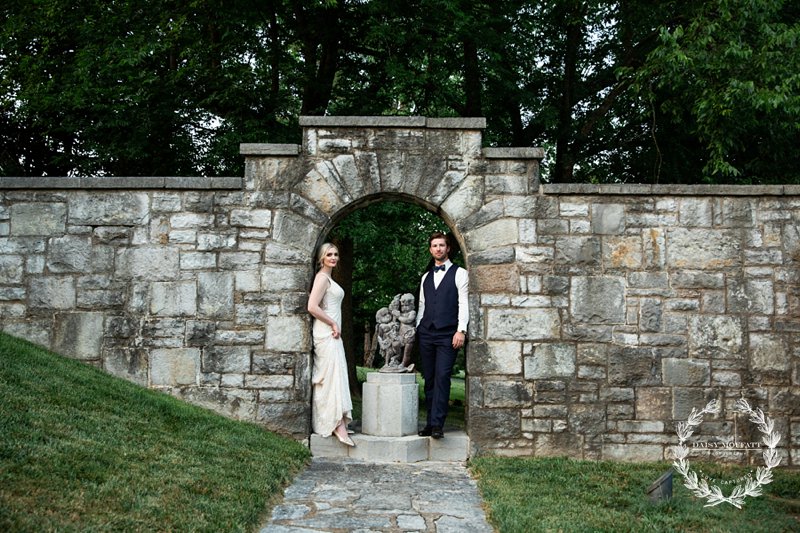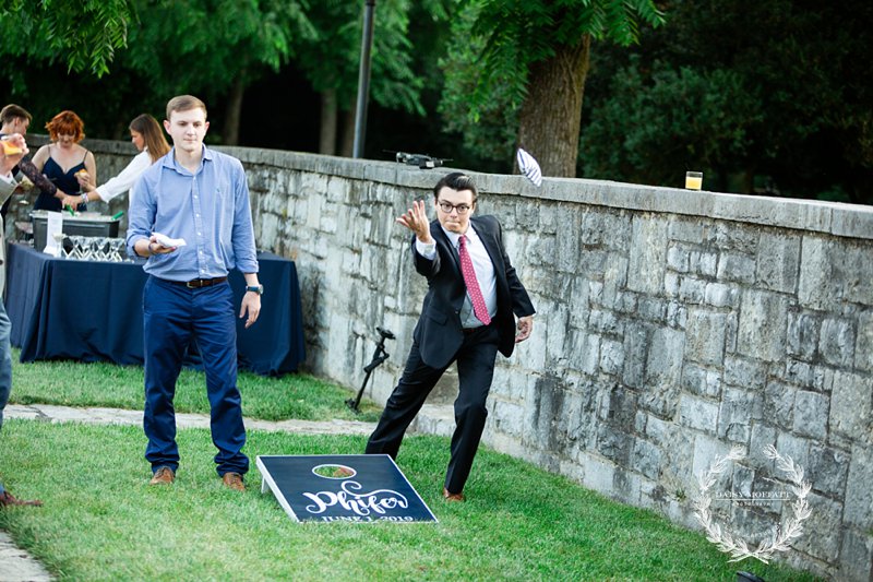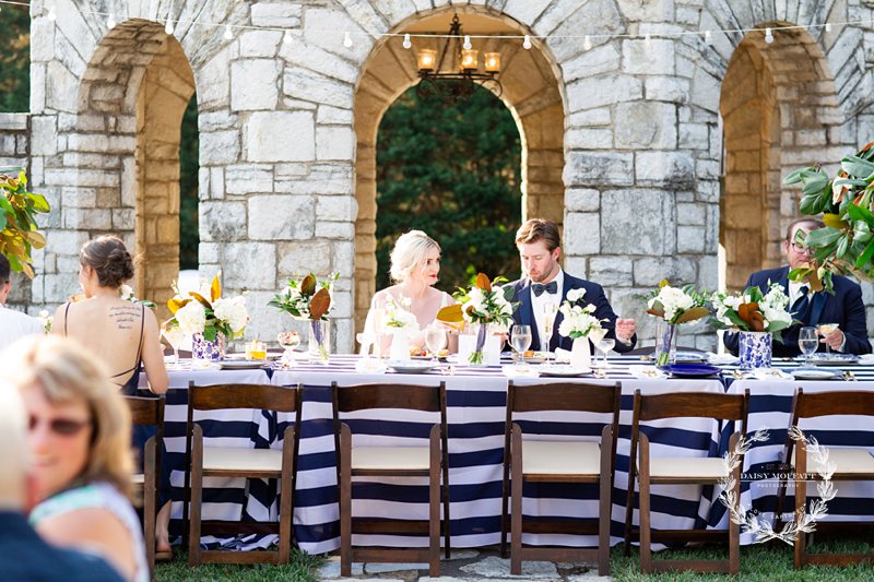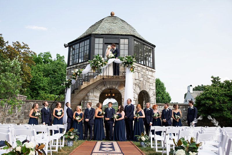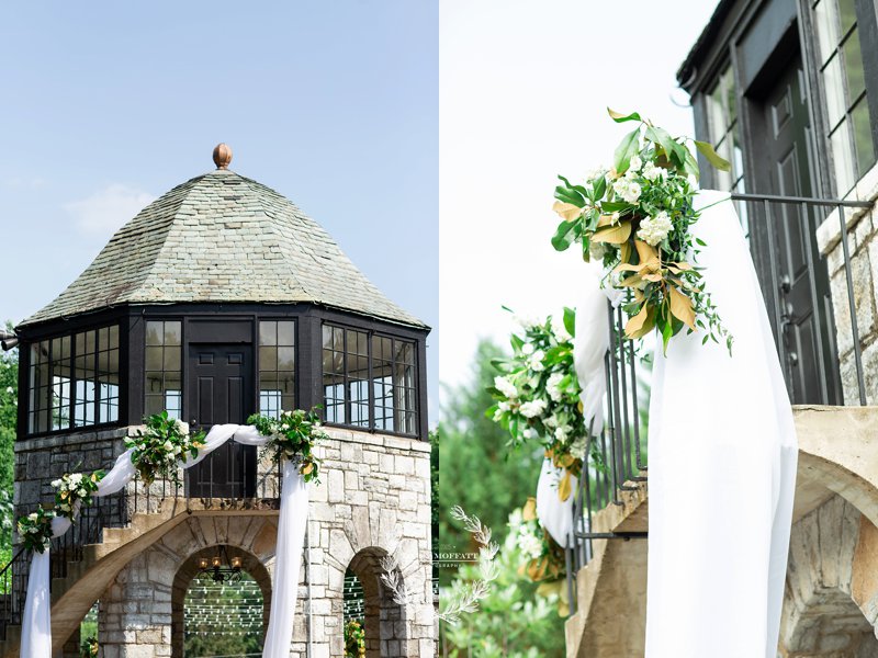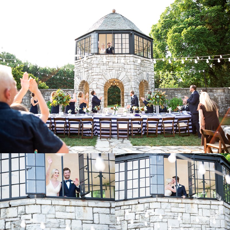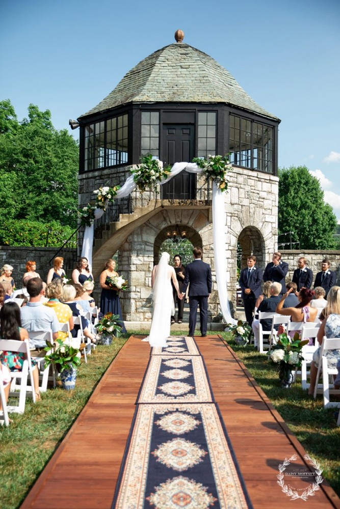 Hold on to your hat, this Kincaid House wedding turned out to be one of the most romantic, fun, and visually yummy days you’ll see this year (no, I’m not biased or anything lol!). West and Madeline said their vows beneath the Kincaid House tower, an icon of this beautiful venue. The crowing moment was watching the sun play in Madeline’s veil as her father walked her down the wooden runway that he and her grandfather built for just that moment. This wedding installation was one of my favorite ideas ever–just look how it defines the space and creates the perfect entrance!!!