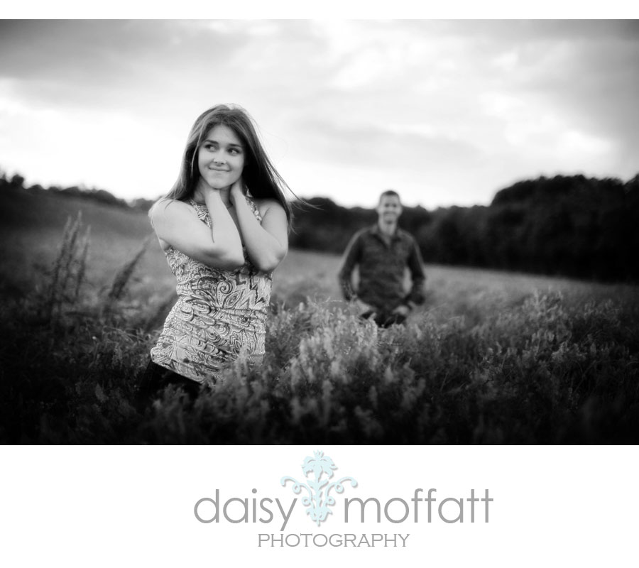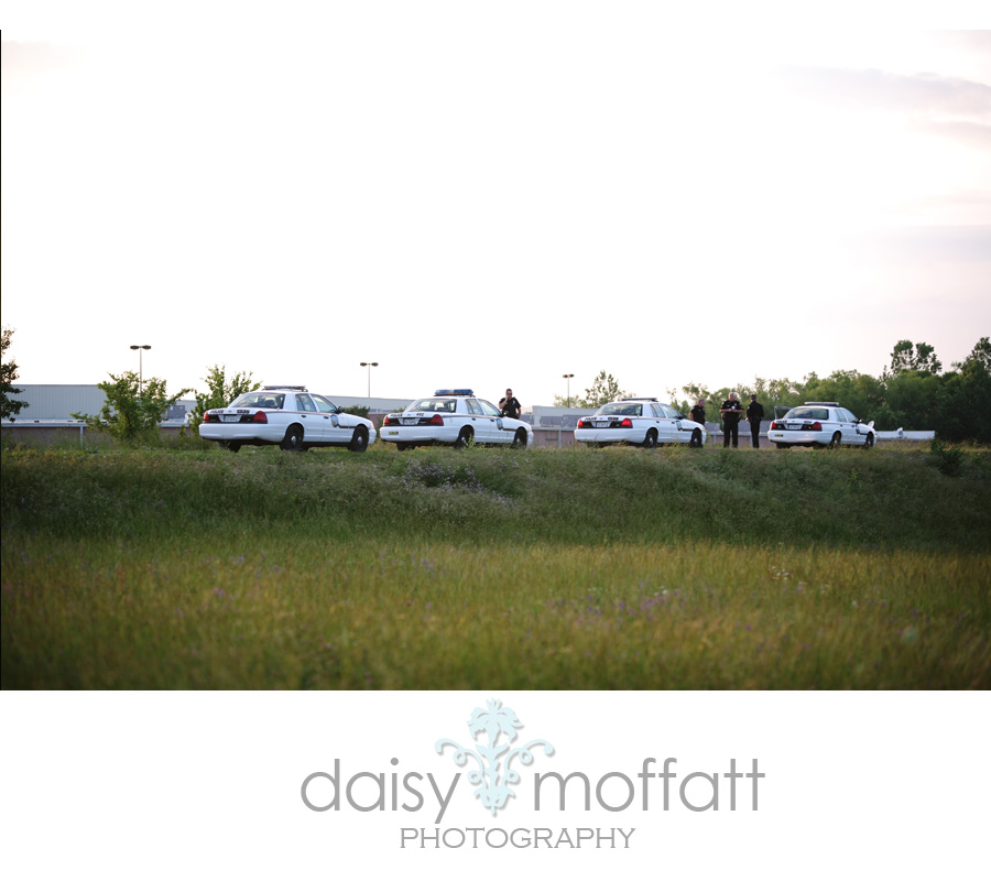 So, I’m excited to say that for the first time we actually had the cops called on us while photographing! Woo Hoo! Now the rebel in me would love to be able to say that we were doing something daring or even illegal to get “the shot” but really it was all a misunderstanding. During Lacey and Brandon’s engagement session apparently a concerned (or maybe nosey?) citizen called the police and swore that we were “illegally hunting” and had guns on public property. When the police began arriving Beau and I nervously held up our “weapons” and showed them that we were just taking pictures. 🙂 Ten minutes and four cops later, we were given the go ahead to continue photographing in the field. Even after all the confusion (and many good laughs with our new friends of the law) Lacey and Brandon ROCKED their session–I think their images below say it all. They were up for anything we asked of them and Beau and I really enjoyed getting to know them better.