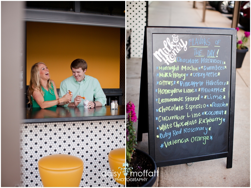 These two are cute beyond words! We had such a good time exploring downtown Chattanooga with Ben and Lindsey in mid April, even checking out one of our town’s newest and cutest gelato joints, Milk and Honey. I loved how Ben was constantly making Lindsey laugh. His eyes would light up every time he glanced her way. If their engagements are a testament to things to come their June wedding is going to be beautiful and so full of love. Enjoy their sneak peek!