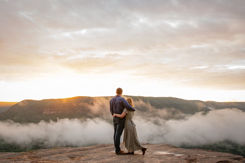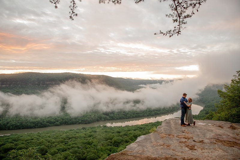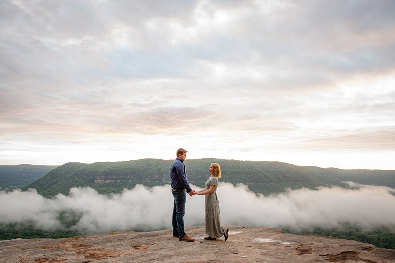 “JennaFaye and Gavin’s chemistry is undeniable! Both of them are playful, adventurous, and interact in the most natural and organic way… they made my job easy! They mentioned wanting to shoot a Snooper’s Rock engagement session since one of their favorite things to do is hiking and enjoying nature together. When I floated the idea of doing a sunrise session (because really not everybody is up for waking up at 4am!) they not only went for it but were so excited!! The weather was super iffy and the forecast seemed to change hourly but we all agreed to just go for it–and I’m so glad we did! We had the perfect amount of cloud cover and the dreamy light bounching off of the floating clouds in the valley were an added bonus. We’re so excited for their 2021 wedding — congratulations JennaFaye and Gavin!”