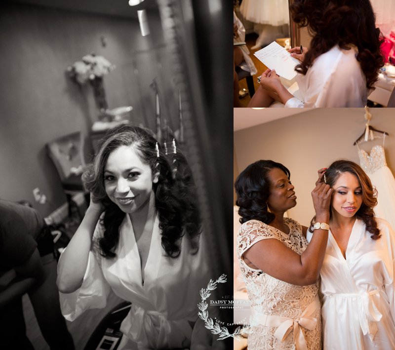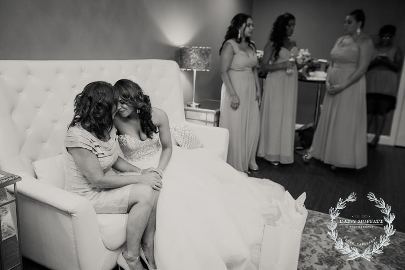 Their wedding day had finally arrived. As I quietly picked up my camera Takira was nervously fidgeting with her hair while her bridesmaids slipped her into her whimsical ball gown. She looked down, hands on her waist, and sighed happily. One final zip and she instantly began to move like a princess, graceful and strong. One moment she was tearfully hugging her mom and the next she was cracking jokes and giggling as her sister helped her into her lace Louboutin heels. Sidney’s mom lovingly shared the hair pins that she wore on her wedding day, finishing Takira’s ensemble in the Stratton Hall suite. They had waited so long and the day unfolded with natural ease and joy. They were finally moving towards the moment she and Sidney had dreamed about on the patio of Stratton Hall. One last peek into the mirror and Takira smiled contentedly, turned, and glided towards her ever after.
