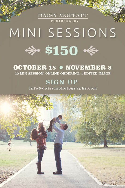 It’s that time of year, the lull before the holiday hustle. Get a jump on your fall portraits and holiday cards with one of our Chattanooga mini sessions. We are offering two dates (see below) so call or email the office to hold your spot. Space is limited! 423.386.5324 or email us at [email protected]