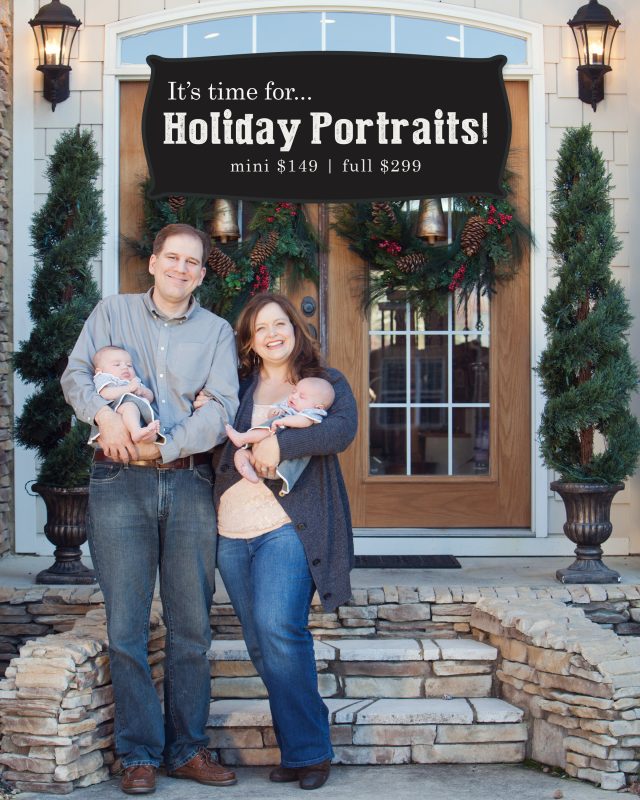 We are booking like crazy but still have about 5 spots available before the cutoff (December 12th)! Call today for more information, to book your session, or to purchase a gift certificate–these sessions are PERFECT for those who are oh-so hard to shop for! 🙂 423.386.5324 or email us at [email protected]