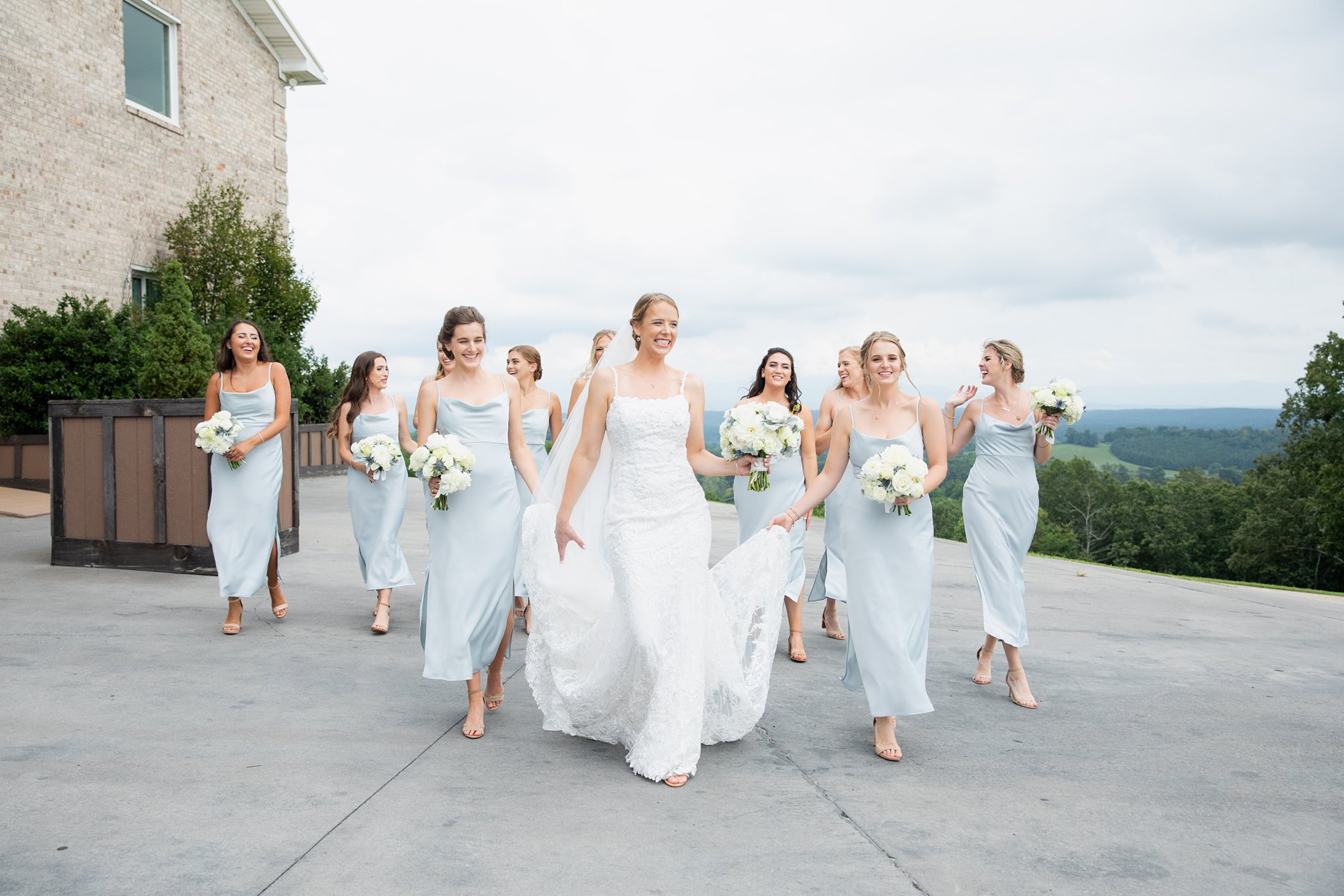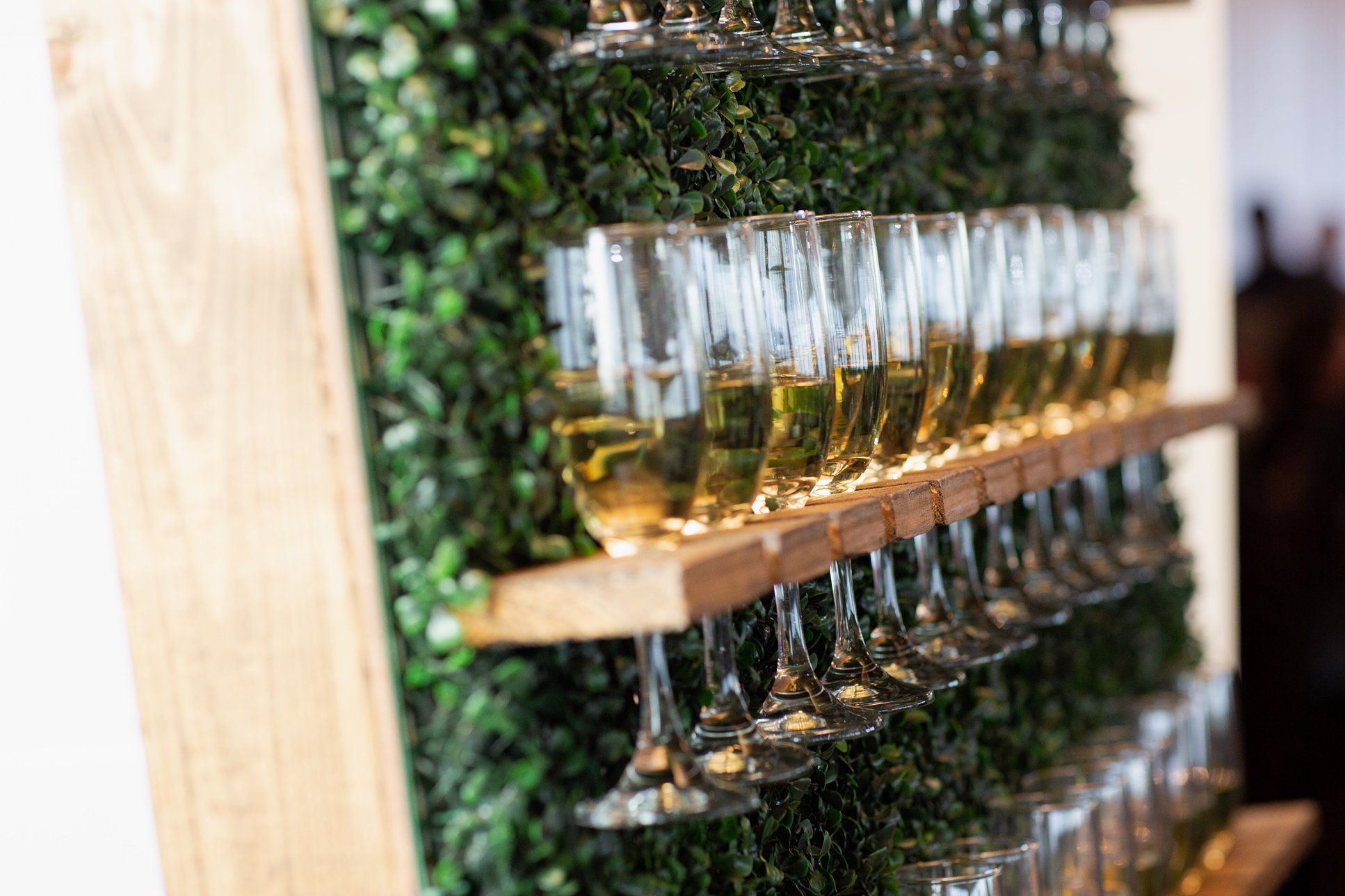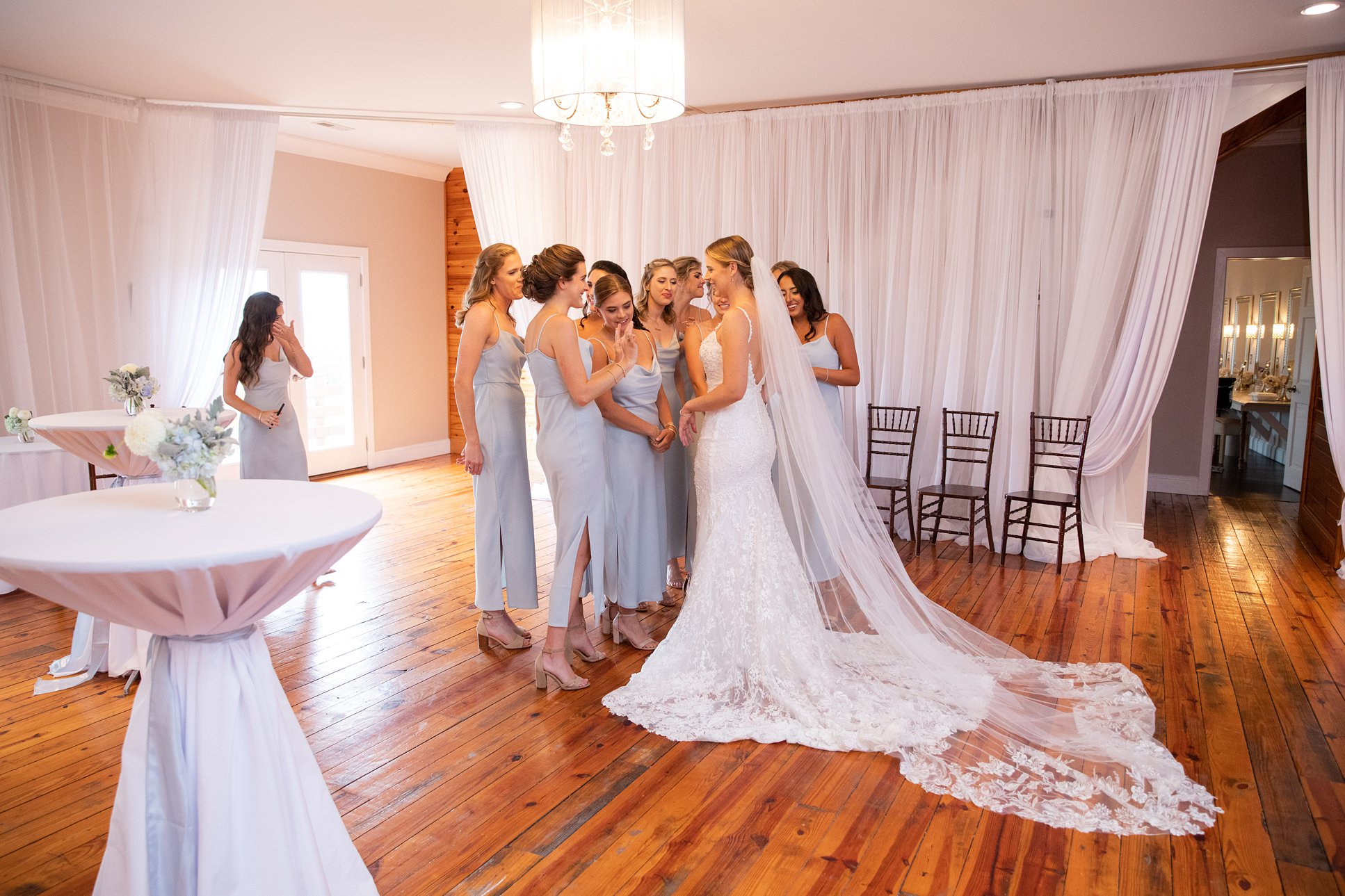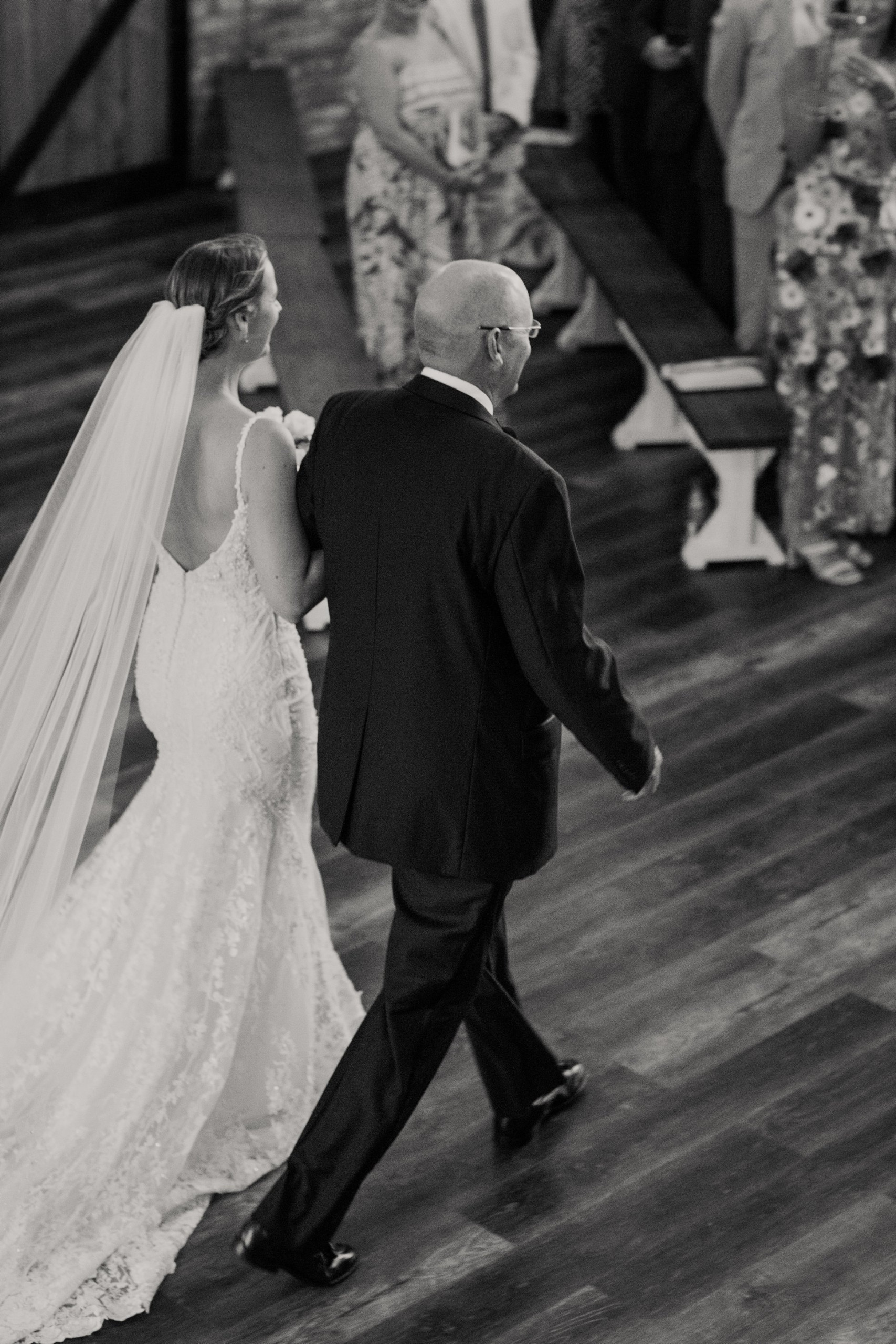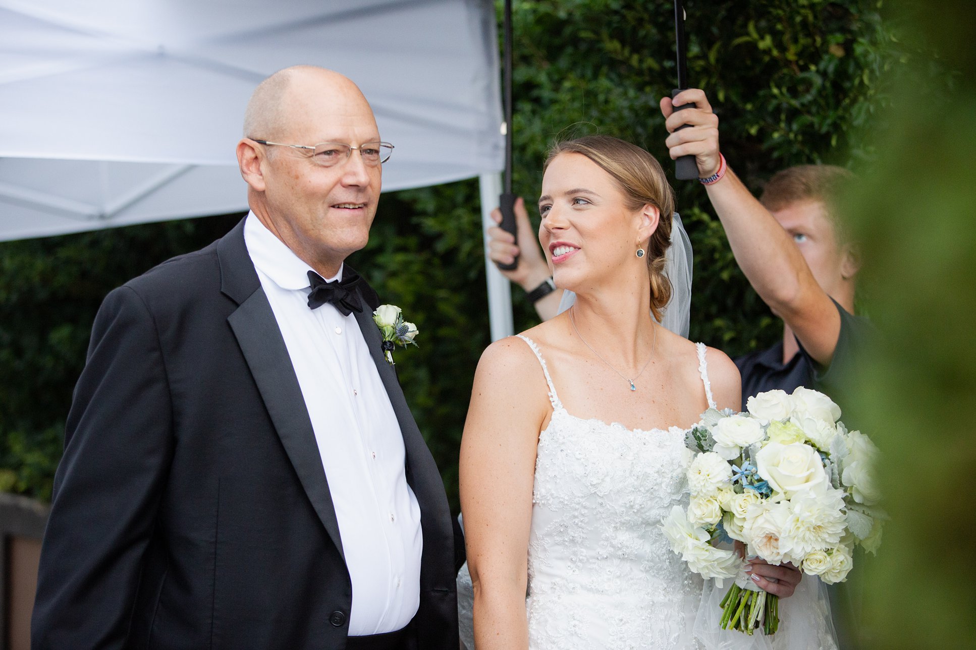Michelle firmly locked arms with her father and they moved forward in unison towards a white wall of curtains. Deep breaths. The mood shifted with the music and the soft pitter patter of rain created a calm in the room beyond. Everyone held their breath.