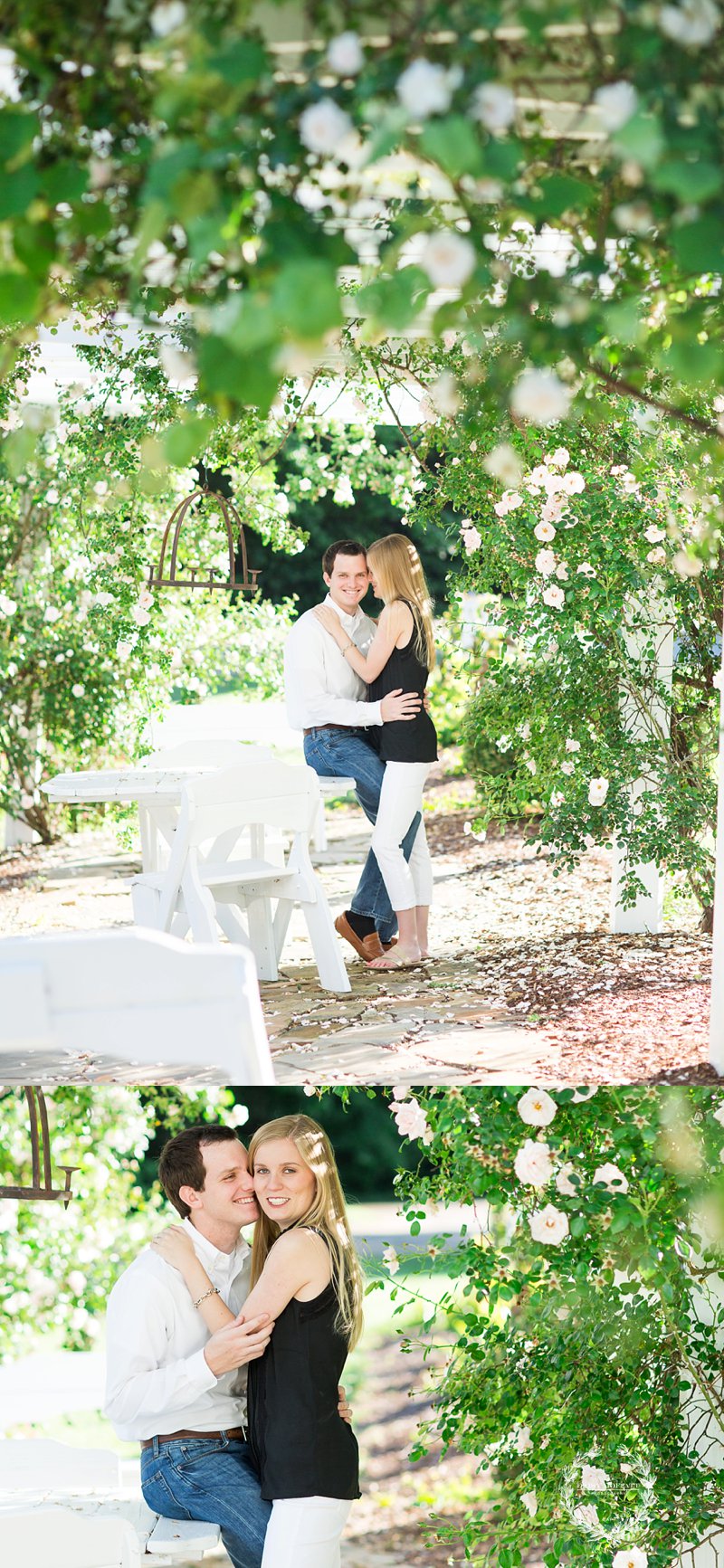 Earlier this month we met up with Greg and Lauren for their engagement session at Walnut Hill Farm. If you haven’t checked out this Georgia wedding venue already we highly recommend you call and swing by sometime. They are wonderful to work with and a dream to shoot for! As Lauren and Greg’s September wedding approaches we knew we wanted to capture some spring engagements at their Walnut Hill Farm wedding venue — and it did not disappoint (I mean check out those climbing roses!!!! Gah!).